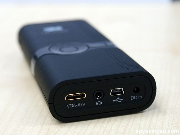 At the back, you get a VGA-A/V multiport that looks like a HDMI port but don’t be confused, it’s not. There’s also an audio-out jack and of course you get a USB port for data transfers and a DC jack to charge the battery of the MPro150.