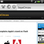 Although it doesn’t really supports Flash on the Android, it is interesting to note that Skyfire has a server side Flash Video conversion. This is similar with how Opera Mini works but instead, it converts Flash videos into mobile friendly version which can be played on Skyfire itself.