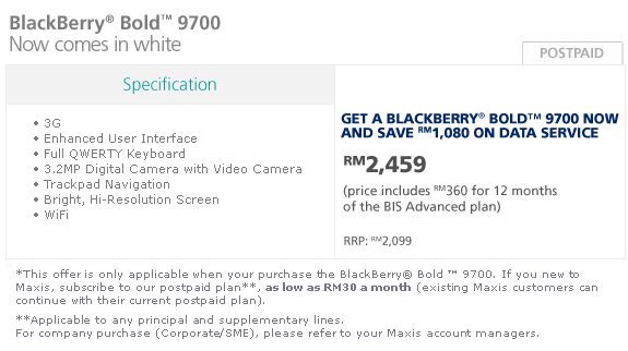 Tags: BIS Advanced OfferBlackBerry Bold 9700BlackBerry Bold 9700 WhiteBlackberry White MalaysiaBlackBerry White PromoMaxis