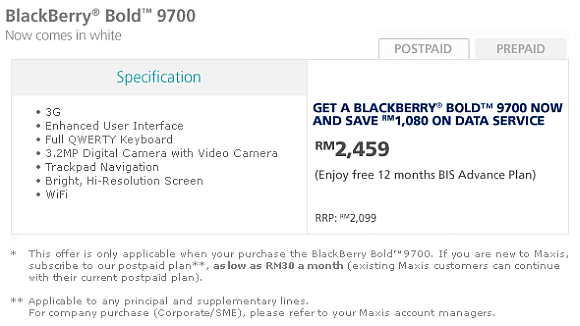At first, we thought Maxis has revised their offer to make it more attractive. However when the retail price of the white BlackBerry Bold is going for RM2099, how could Maxis mention FREE when customers are paying more than the retail price?