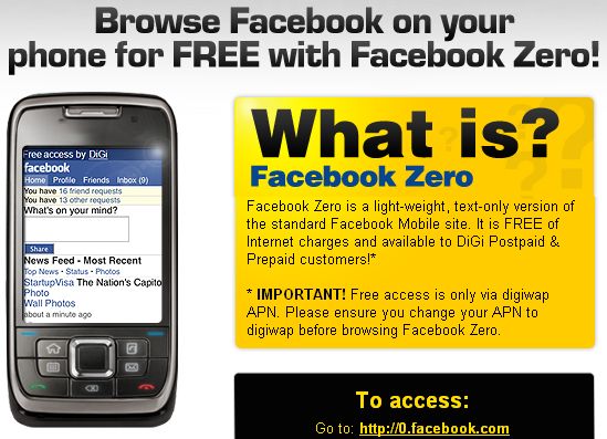 As announced earlier, Facebook Zero offers free access on selected Telcos and DiGi is the first to offer such feature in Malaysia. Simple enough, accessing via 0.facebook.com offers free access on your mobile phone.