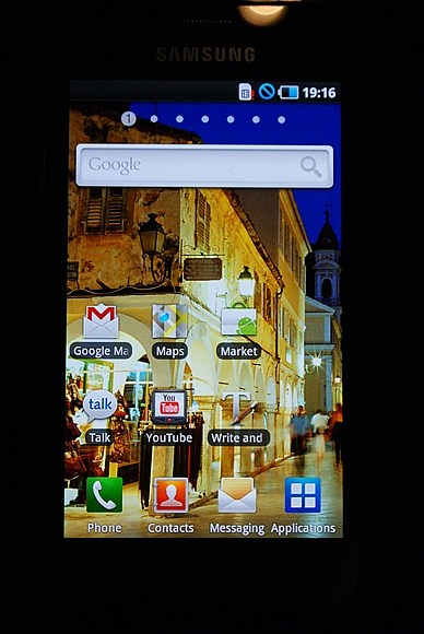 The Galaxy S runs Android 2.1 (update 1) similar to the Desire. Samsung has added its own TouchWhiz 3.0 skin on top of the Android OS which results in an iPhone OS-ish interface. This means the Galaxy S can do away with the standard “home”, “menu”, “return” and “search” buttons you normally see on Android devices. In its place you get three main buttons on the front panel of the Galaxy S – a central “home” button and flanking that button is the “menu” button on the left and a “return” button on the right.
