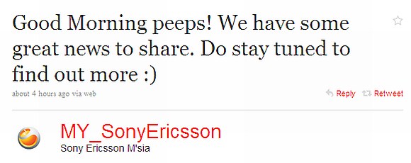 Turns out, Sony Ericsson via Twitter, has put out a tweet that is very similar to the one Maxis made.