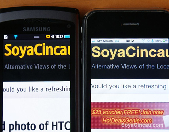 Many are saying that AMOLED screens are a bane to use under direct sunlight, well we beg to differ, our comparison with the LCD on the iPhone 3GS and the Super AMOLED on the Wave reveals that the difference in visibility is very minimal. Both displays under bright sunlight look a little washed out but are still very usable. We don’t see what the big fuss is about, we didn’t have any issues with using the Super AMOLED under bright sunlight.