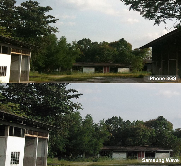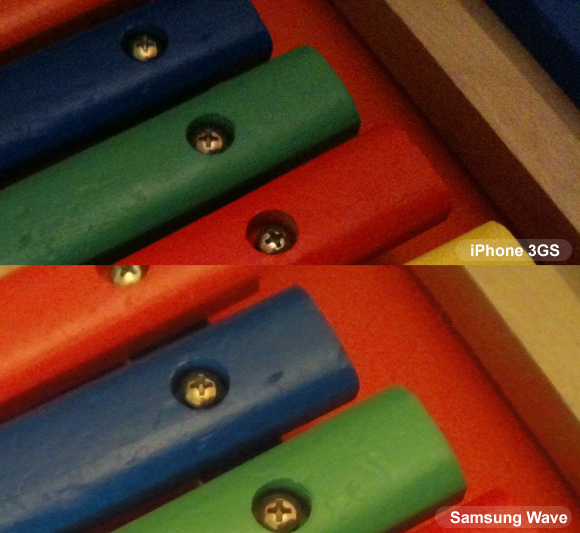 Test shot: iPhone 3GS (top) vs. Samsung Wave S8500 (bottom). Click for 100% crop