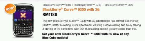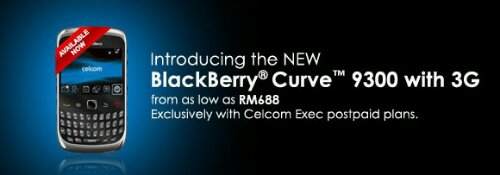 While DiGi is merely starting its ROI for the new BlackBerry Curve 9300, Celcom is going full swing with the device. Celcom Exec 50 and Exec 250 customers can get the Curve 9300 for RM688 with a RM250 monthly commitment. If that’s too high, the device goes for RM788 or RM888 for a lesser monthly commitment of RM148 and RM118 respectively. The commitment plans are on a 12 months contract.