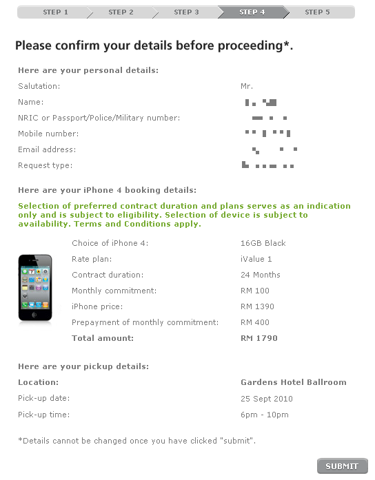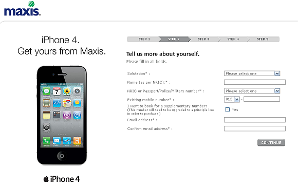 If you’re afraid to complete the booking process in fear of needing to make a payment, not to worry, there’s no payment involved. Here’s a step-by-step walkthrough of the Maxis iPhone 4 booking process.