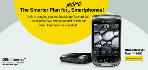 DiGi once again has launched another ROI, this time for the upcoming BlackBerry Torch 9800. Just like the rest of its BlackBerry offering, it is bundled together with DG Smart Plan.