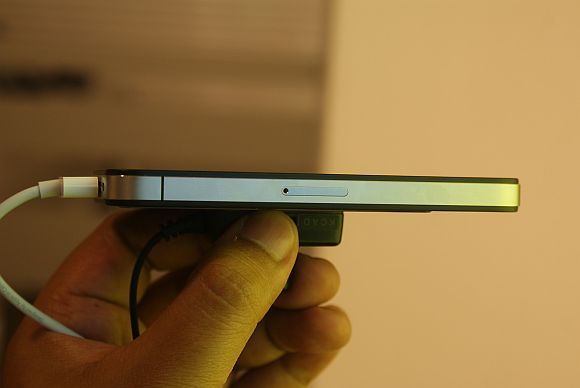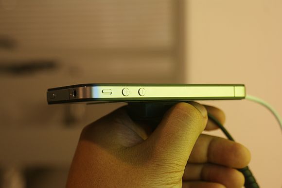 Apple says that the iPhone 4 is the thinnest smartphone in the world and although the data tells you that, the look and feel of the iPhone 4 tells a different story. I looks, to us, chunky from this angle. In fact, the Samsung Galaxy S looks and feels thinner.