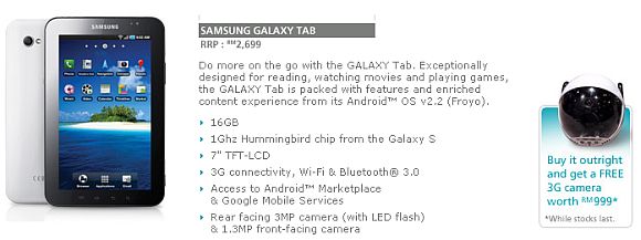 Finally the Samsung Galaxy Tab makes an appearance on Maxis website after a week has passed since launch.