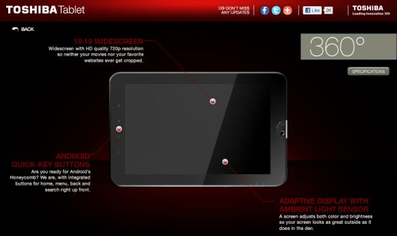 While we’re at it. Here’s what the Toshiba Tablet will bring into the tablet wars: