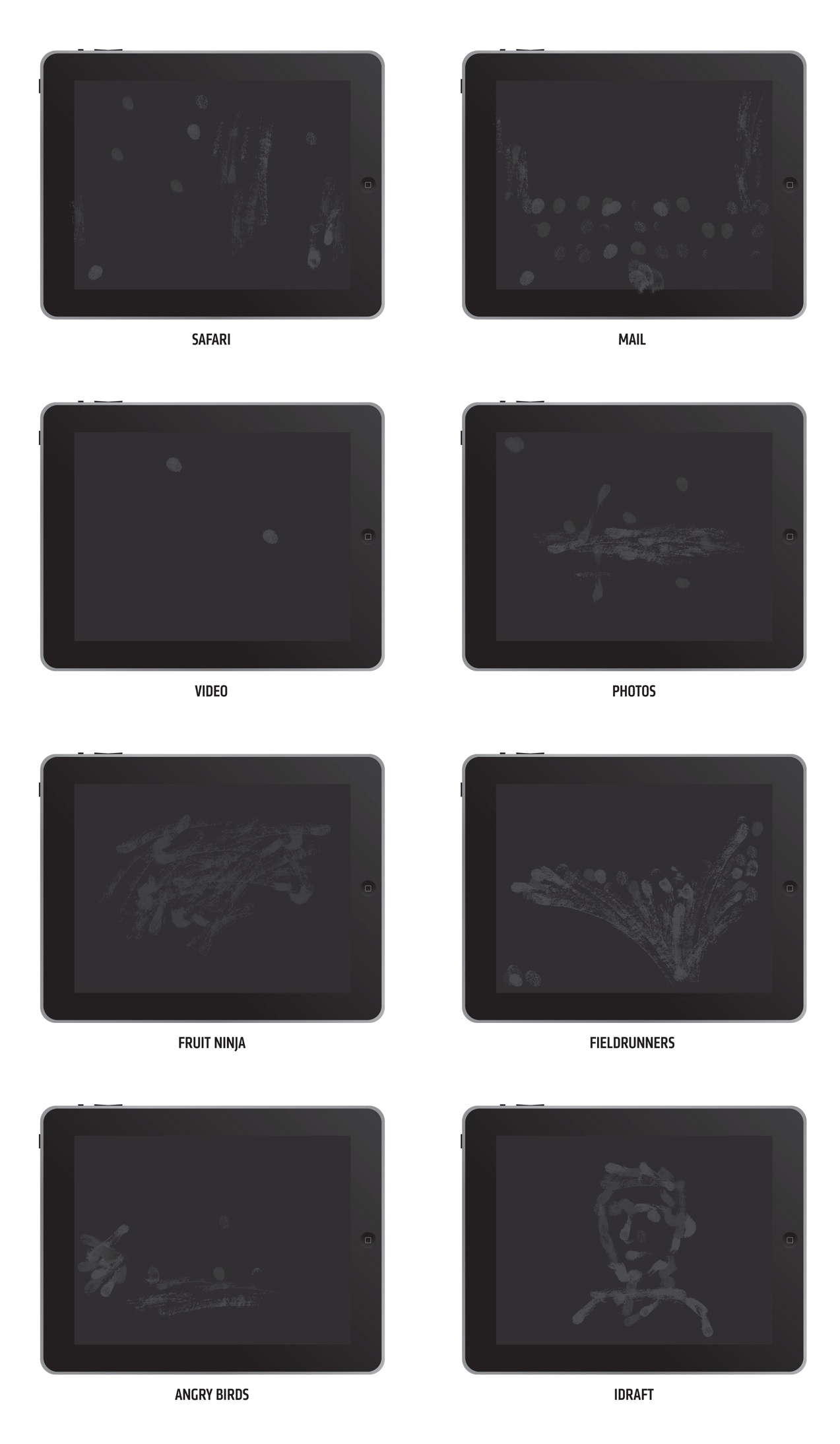 Screen smudges on your touch screen device are more than just an annoyance. When observed carefully screen smudges can tell you a hidden, mostly ignored story about how one uses his device.