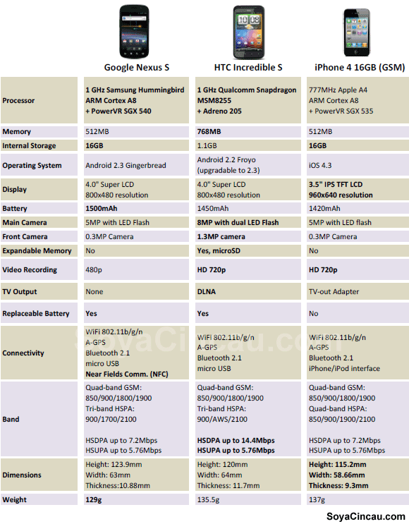 But is it? Is the Nexus S a better phone compared to its closest competitor the HTC Incredible S for it to command such a high price? Spec for spec how would both of this top shelf Android devices compare with the iPhone 4?