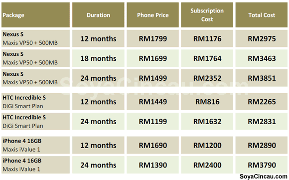And as you can see in the chart, the HTC Incredible S with DiGi’s Smart Plan produced the cheapest cost of ownership across both 12- and 24-months contract by some margin. Surprisingly, the cost to own the Nexus S is even more expensive than owning a 16GB iPhone 4. Considering that the iPhone 4 is generally perceived as a premium product it’s mind-boggling to think that Samsung would want to price the Nexus S higher.