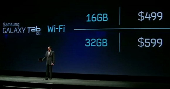 For the Galaxy Tab 10.1 WiFi only model, the 16GB version is going at US$499 while the 32GB version is going for $599, which is the same as the iPad 2. It will be made available in the US on 8th June.