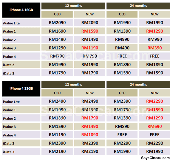 Compared with its initial iPhone 4 pricing, iValue plans bundle price see a reduction of RM100-200 depending on model and contract duration.