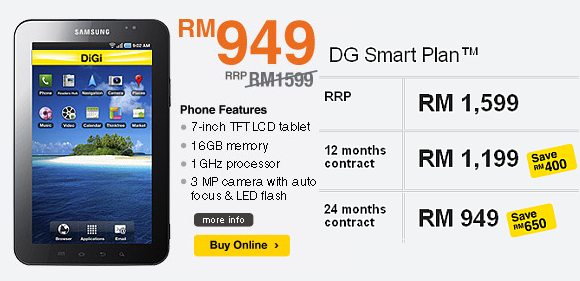 Maxis who was the first to bundle the Galaxy Tab in Malaysia doesn’t seem to offer any contract bundle anymore. The device is still visible under its Android tablet page but the contract plans are nowhere to be found.