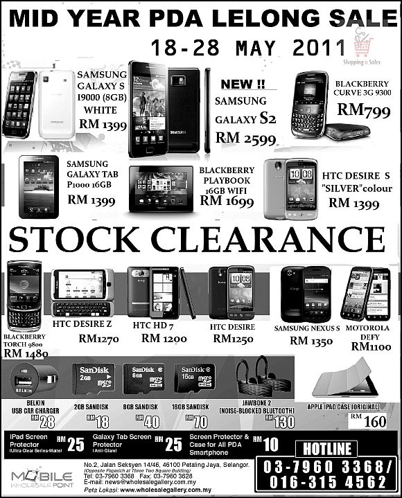 Spotted this on shoppingNsales. BlackBerry PlayBook selling for RM1,699 and the Samsung Galaxy S II selling for RM2,599 available all this week and next. We’re not sure if these units are legit imports but if you’re looking for a good deal and don’t mind the crowd, hey why not.