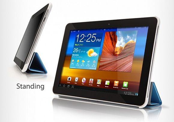 And things just got even more interesting with the unveiling of this — the Smart Case for the Galaxy Tab 10.1. At first glance, you’ll be forgiven to mistake the Smart Case for Apple’s Smart Cover for the iPad 2.