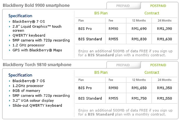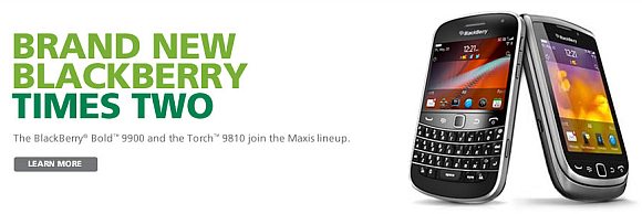 Maxis has released not just one but two new BlackBerry devices running on the latest 7 OS. Apart from the Bold 9900, Maxis is also offering the Torch 9810 which is also available on BIS Pro and BIS Standard.