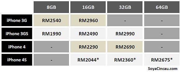 These are estimates based on the US outright pricing and there other factors to consider as well, such as shipping and tax. Obviously it will be cheaper to own if it was tied with contract. With all big 3 telcos – Maxis, DiGi and Celcom offering the iPhone 4, we would expect competitive offers when the iPhone 4S reaches here.