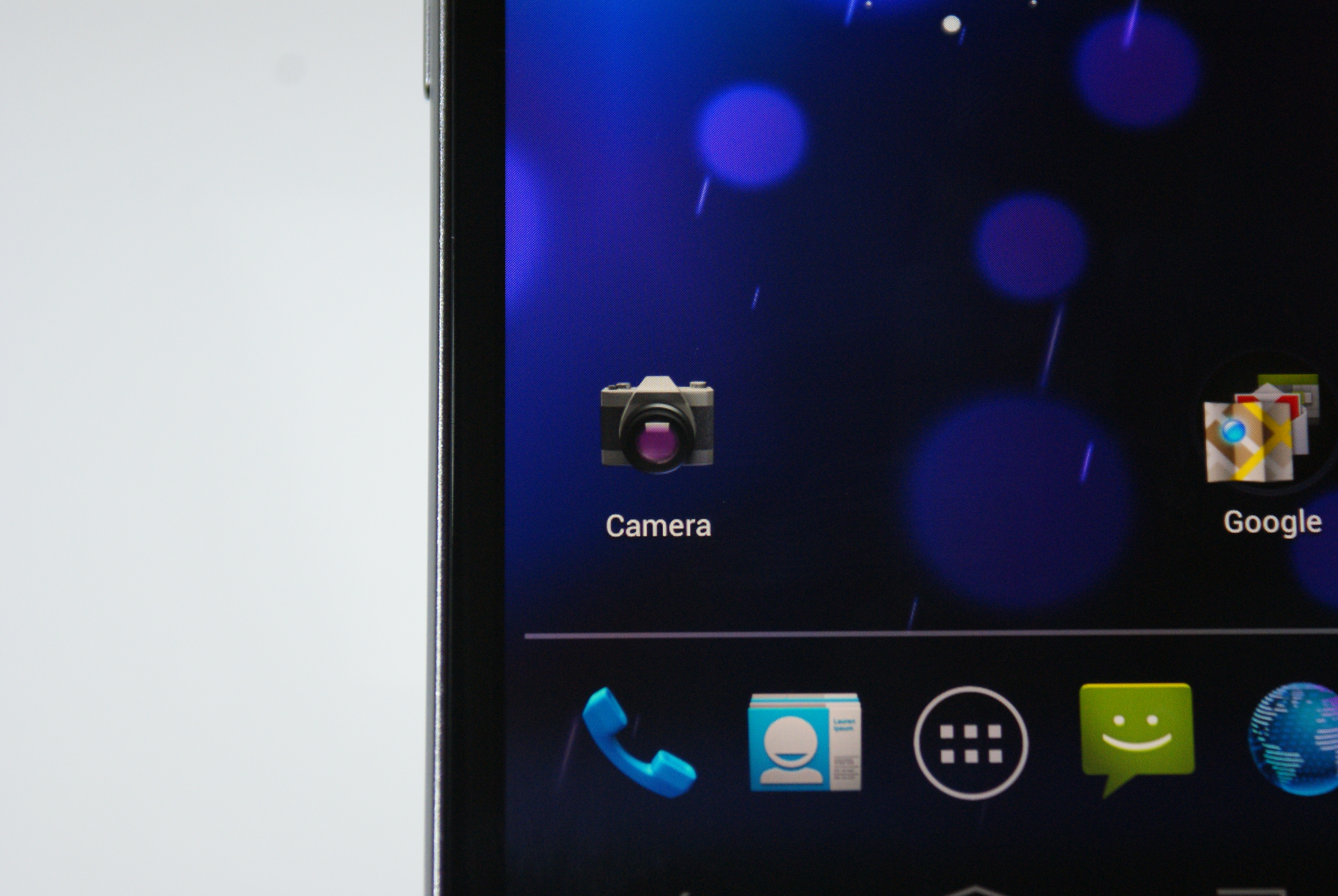 Lastly, we took a close-up shot of the 1280×720 pixel 4.65-inch screen on the Galaxy Nexus. While it is indeed a pentile display (which means it has sub-pixels within each pixel), the screen is one of the sharpest we’ve seen. It’s also amongst the best out there in terms of brightness and colour reproduction. It’s a great screen to behold. The display is so sharp that the onscreen navigation buttons look like there are printed on the screen.