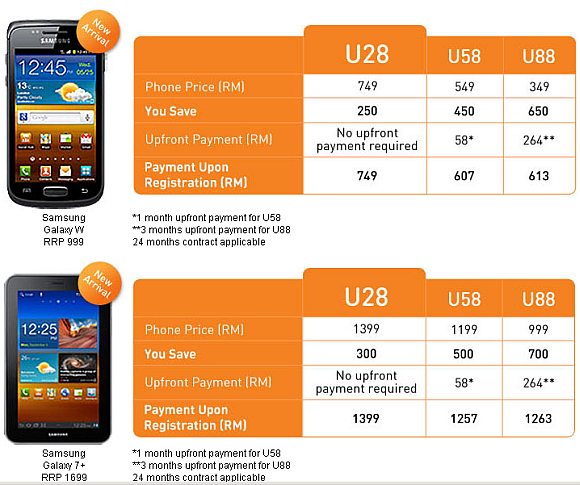 U Mobile has revealed its Samsung Galaxy Tab 7.0 Plus and Samsung Galaxy W plans ahead of its 5th December dateline.