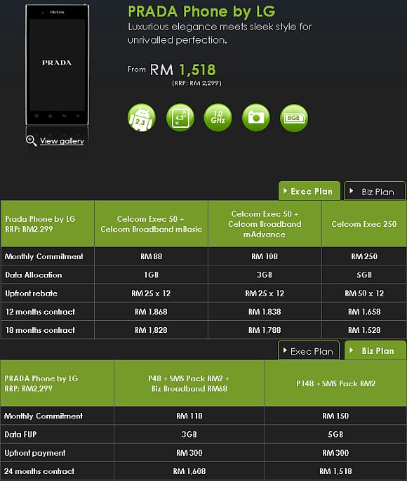 Celcom has finally revealed its bundle offering for the LG Prada. The LG Prada which retails outright for RM2,299 is offered as low as RM1,518 with 24 months contract of Celcom Biz P148 + SMS Pack RM2.