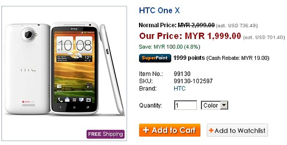 If you can’t wait to get your hands on the quad-core HTC One X, an online retailer SuperBuy has started accepting orders for as low as RM1,999. That’s RM100 less than the expected RRP of RM2,099.