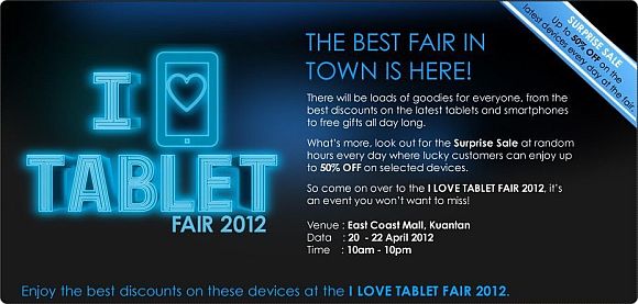 Celcom is offering up discounts and freebies on tablets, smartphones and at the I Love Tablet Fair 2012 happening in Kuantan this weekend (20 – 22 April) 10am to 10pm at the East Coast Mall.