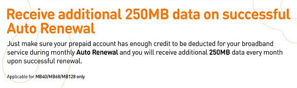 For its broadband service, U Mobile is offering additional 250MB data for successful auto renewal on MB40 (2GB), MB68 (5GB) and MB128 (20GB) plan. For those that have opt for auto renewal previously will also get to enjoy this 250MB bonus data.