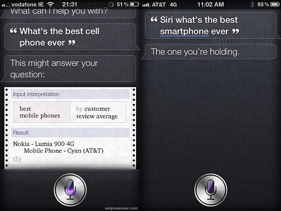 The folks at Cupertino were not amused when Siri thinks that the Lumia 900 is the best smart phone/cell phone ever. The so called embarrassment was due to the fact that Siri uses Wolfram Alpha engine to answer various inquiries.