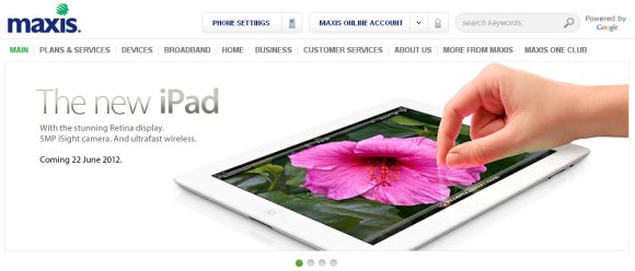 Maxis has started teasing on its front page that the new iPad is coming next Friday on 22nd June 2012, which indicates that they are possibly offering the Apple tablet on their network. Despite not having 4G LTE capabilities, Maxis now offers a faster wireless broadband service with its newly revamped DC-HSPA+ network that supports up to a maximum of 42Mbps.