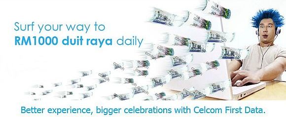 Special for this festive Raya season, Celcom offers up RM1,000 duit raya each to two lucky winners every day for 30 days and all you need to do is purchase additional volume or subscribe to any Instanet plan or Mobile Internet plan.