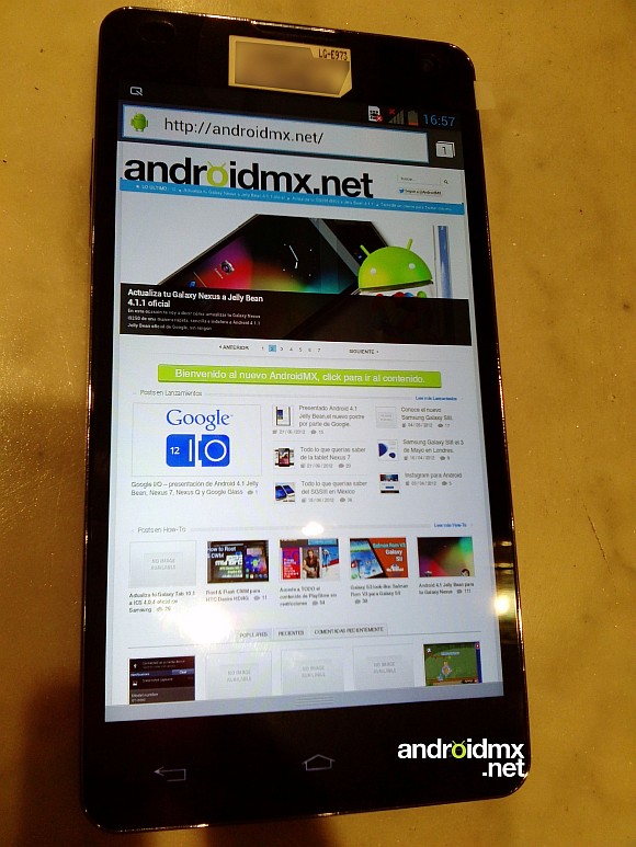 The Optimus G that carries the model number E973 runs on the latest quad-core Krait processor at 1.5GHz with 2GB of RAM and Adreno 320 GPU. The front features a large 4.7″ IPS display that does 1280×720 which gives it a density of 320ppi. Over at the back, it comes with a 13MP camera. Internally it runs on Android 4.0 Ice Cream Sandwich but it is possible that the device might be launched with Android 4.1 Jelly Bean.