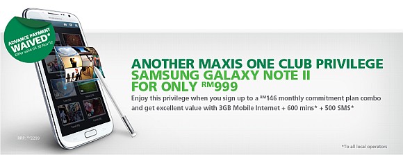 The Samsung Galaxy Note II bundled plans is finally revealed on Maxis. This time Maxis has gone with a wider choice of plans including the recently introduced TalkMore 78 postpaid. For loyal customers under Maxis One Club, they are offering the Galaxy Note II from as low as RM999.