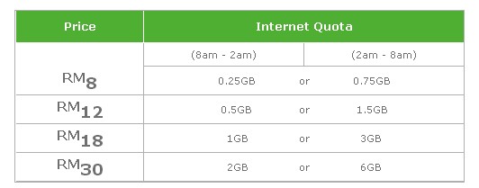 Quota top up has been revamped as well starting from RM8 to RM30. Just like the base broadband plan, it also split by on-peak and off-peak hours. If you don’t top up after exceeding the quota, there’s no excess charge but download speeds will be throttled down to 64kbps (3GB & 8GB plan) or 128kbps (20GB, 28GB & 48GB).