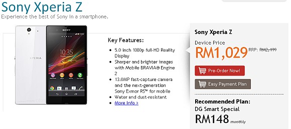 DiGi has commenced its pre-order of the Sony Xperia Z where you can secure a unit before its official availability this Friday, 15th March 2013. The Xperia Z which retails at RM2,199 is offered as low as RM1,029 with DG’s new Smart Plans.