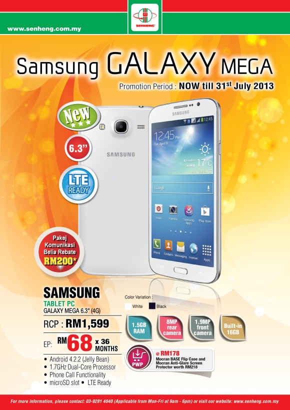 If you are looking for something big, the Samsung Galaxy Mega has finally arrived in Malaysia. Just as teased earlier, the mammoth 6.3″ smart phone retails at RM1,599.