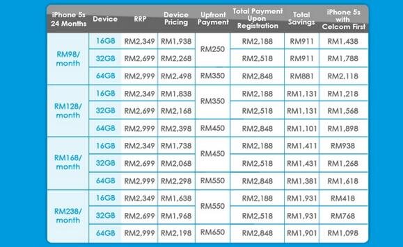 UPDATE: Celcom is also offering the iPhone 5S on 24 months plan option with the 16GB unit offered as low as RM1,638. Head after the break for the 24 months pricing.