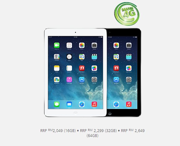 On Maxis, the new iPad Air is available with 24 months contract of SurfMore 30, 50 & 75 which gives you 1GB, 2GB and 5GB of mobile data respectively. The full bundled pricing as follows: