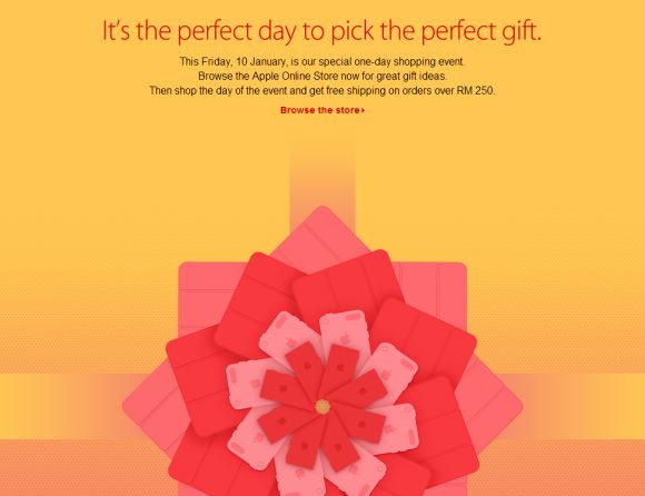 Apple will be holding a one day only sale this Friday, January 10 for its online stores across Asia. You can expect discounts and deals for Apple products and maybe accessories but no details have been released. What has been revealed is that shoppers can enjoy free shipping with purchases above RM250.