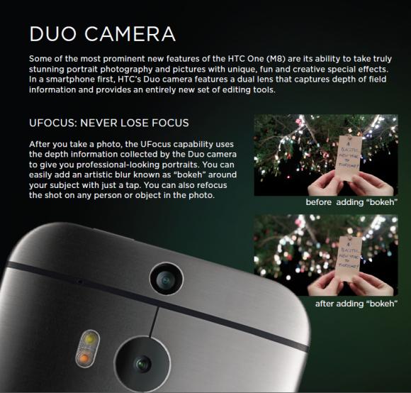 What’s unique about the HTC One (M8) is the secondary camera located just above the primary rear camera. The secondary camera acts as a depth sensor allowing you enhance depth-of-field in pictures after the picture has been taken. HTC has also added new filters and effects to take advantage of the dual-camera setup. Also new for the One (M8) is the dual-tone flash that HTC claims produces a more natural lighting and reduces flash-burns.
