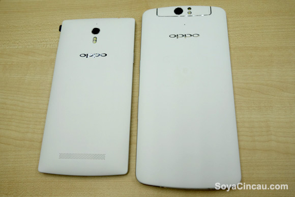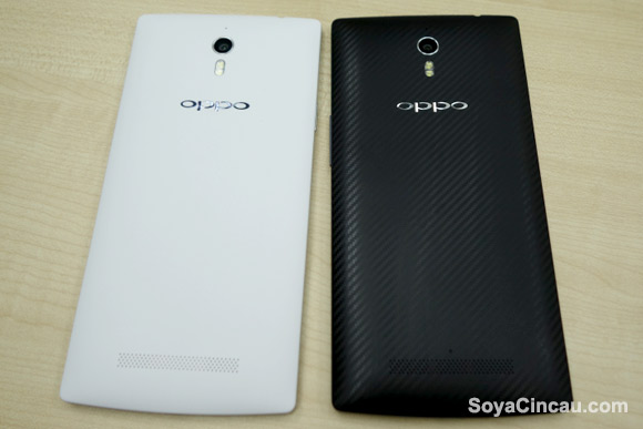 Now moving back to the Find 7a, there are 2 colours available – A textured white unit and a matte surfaced grey carbon fibre looking black. Both of which will be available on the high-end Find 7 smart phone as well. Among the 2, we are liking the white colour unit which has a texture that’s similar to LG’s G Pro 2 back cover. The black carbon-fibre looking back cover is exclusive to the high-end Find 7 model.