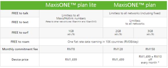 MaxisOne Plan Lite – 1GB Internet (RM78/month) – RM1,699