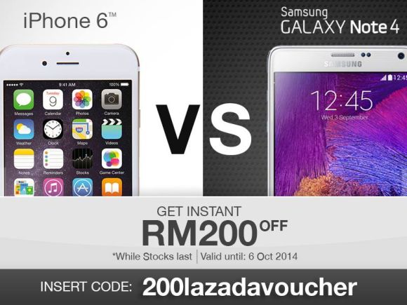 The Samsung Galaxy Note 4 imported unit can be yours at RM2,225 while the iPhone 6 is offered from RM2,339 after discount. Check out the following offers from Lazada: