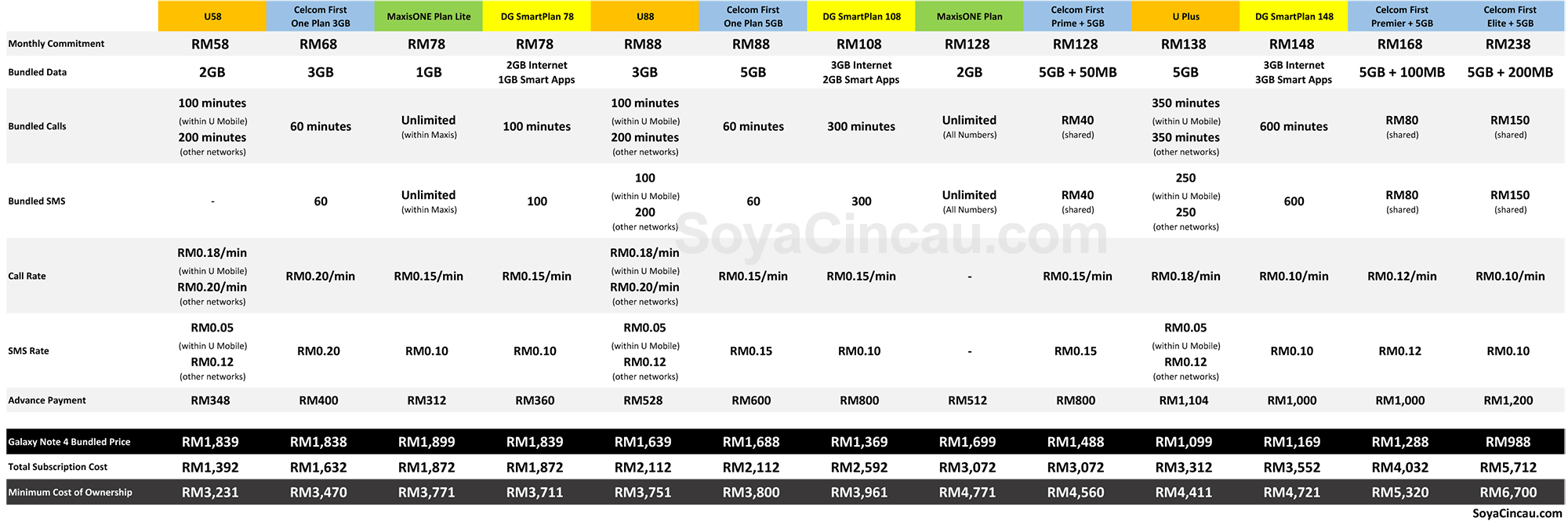 Another intangible consideration is customer service, network coverage and quality which varies depending on telco and location. As usual, if you spot any errors do highlight them under the comments. For an easier reference, you can click on the full comparison sheet below.