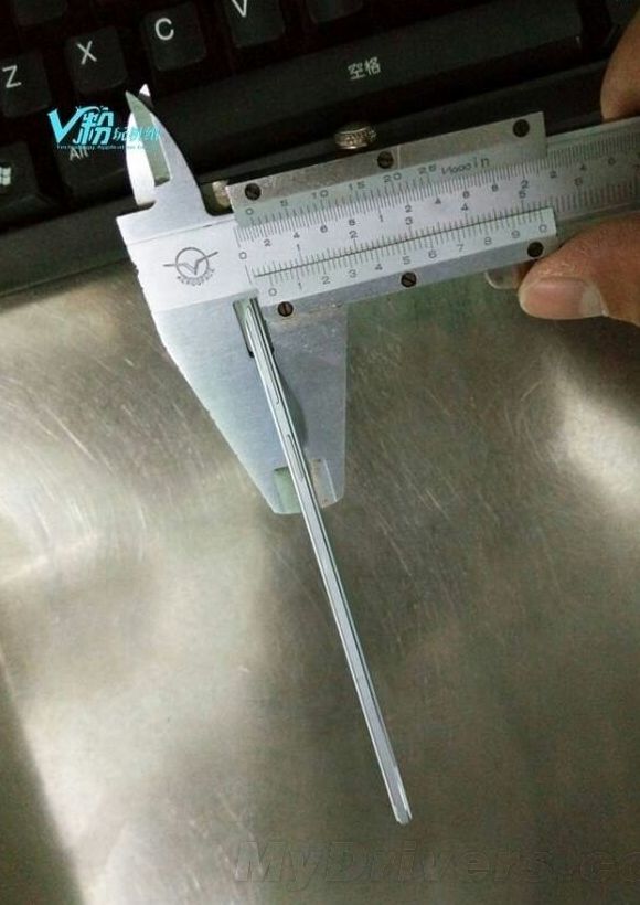 Vivo is eyeing to take away the thinnest smart phone title from the OPPO R5 with its upcoming X5 Max. In a leaked photo with a caliper ruler, the upcoming ultra-thin device is shown to be less than 4mm thick (purported to be 3.75mm), undercutting the OPPO R5 that was recently launched at 4.85mm. Earlier on, the X5 Max was said to be about half the thickness of an iPhone 5/5S, making it as thin as 3.8mm.