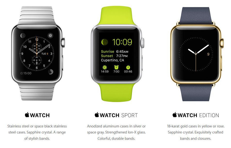 The new wearables are the Apple Watch, the Apple Watch Sport and the Apple Watch Edition, where the former comes with a shiny stainless steel surface and band while the Watch Sport will have an customised aluminium frame, with the ultra-chic Watch Edition sporting a solid 18-karat yellow or rose gold frame.
