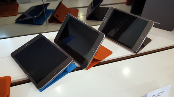 The tablets are available now and will be priced at RM 1,299 for the 8 inch model while the 9.7 inch model will retail for RM 1,599, with both prices inclusive of GST. The Samsung Galaxy Tab A will come in Sandy White, Sandy Black and Smoky Titanium along with the S Pen.